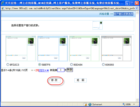 個性化訪客窗口,使之與網(wǎng)站風(fēng)格整體協(xié)調(diào)統(tǒng)一。 登陸kf000在線客服系統(tǒng)網(wǎng)站,點(diǎn)擊“系統(tǒng)設(shè)置”->“風(fēng)格設(shè)置”->“客戶窗口設(shè)置”,彈出客戶窗口皮膚選擇頁: